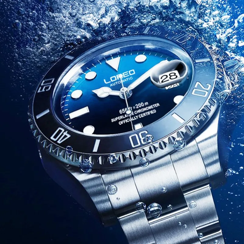 On sale LOREO New 200M Waterproof Mens Sport Watch Luxury brand Automatic Mechanical Watch Sapphire Screw Crown Rotatable Bezel LuminousGet 60% OFF, VALID UNTIL TOMORROW